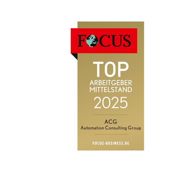 Die Auswertung zum „TOP Arbeitgeber Mittelstand“ von FOCUS Business basiert auf einer repräsentativen Umfrage in 205.000 vorqualifizierten Unternehmen und in Ergänzung auf deren Online-Bewertungen. Über ein Punktesystem wurden die Kategorien Arbeitsbedingungen, Unternehmenskultur, Gehalt und Karrieremöglichkeiten bewertet. ACG wurde in die Finalistenliste der 4.000 Unternehmen aufgenommen, die zwischen 100 und 200 Punkten erzielen konnten. Im Gesamtranking belegt ACG Automation Consulting Group Platz 1.833, im Bereich Consulting liegt ACG auf Platz 230 von 369 ausgezeichneten Unternehmen.